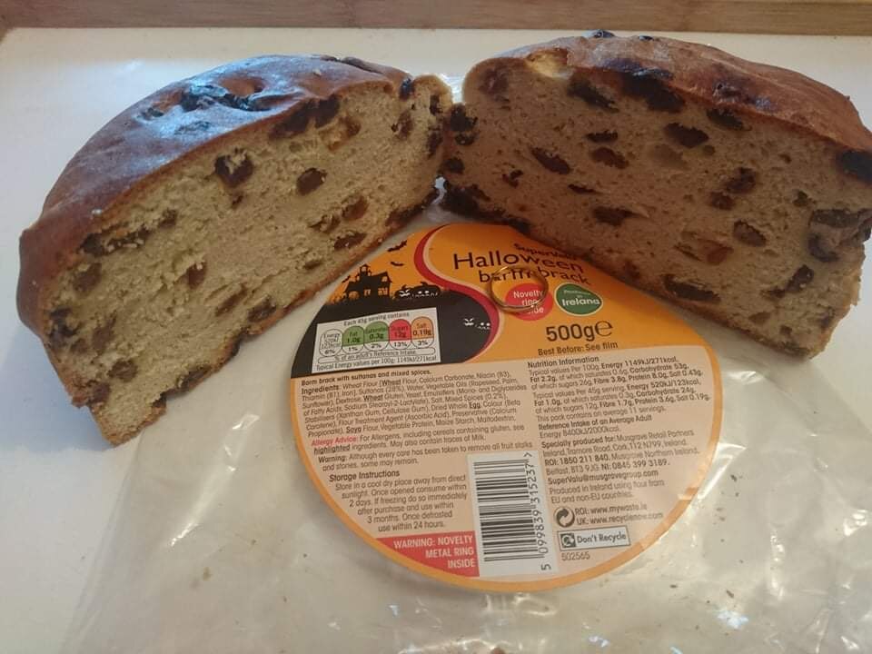 In Irlanda, un dolce tradizionale legato a Halloween è il “barmbrack”: un pane dolce (o torta) con frutta secca, e che in passato conteneva oggetti nascosti come un anello, una monetina, un bastoncino, un pezzo di straccio.